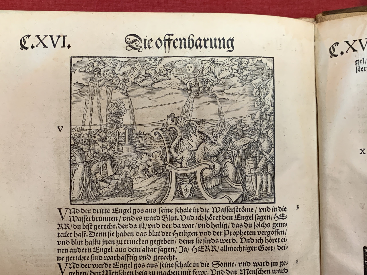 Berühmt wurde ein Holzschnitt aus der Offenbarung Johannes. Man sieht den Teufel, wie er auf dem Papstthron sitzt!