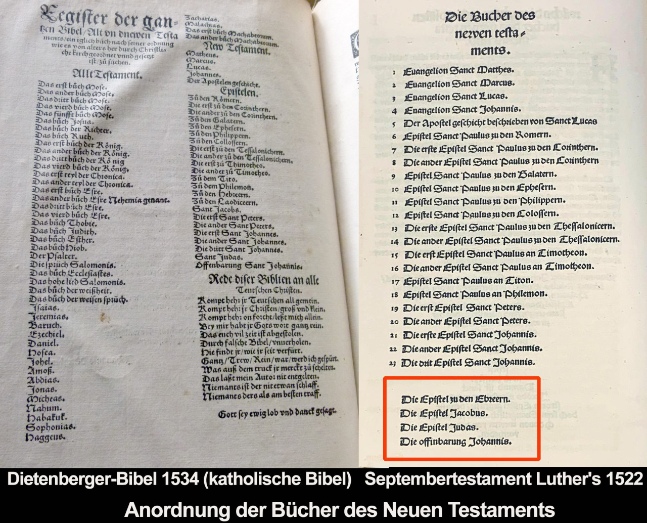 Die Dietenberger Bibel 1534 versus Luther's Reihenfolge der neutestamentlichen Bücheralte Ordnung statt Luther's Bibelkritik![]()